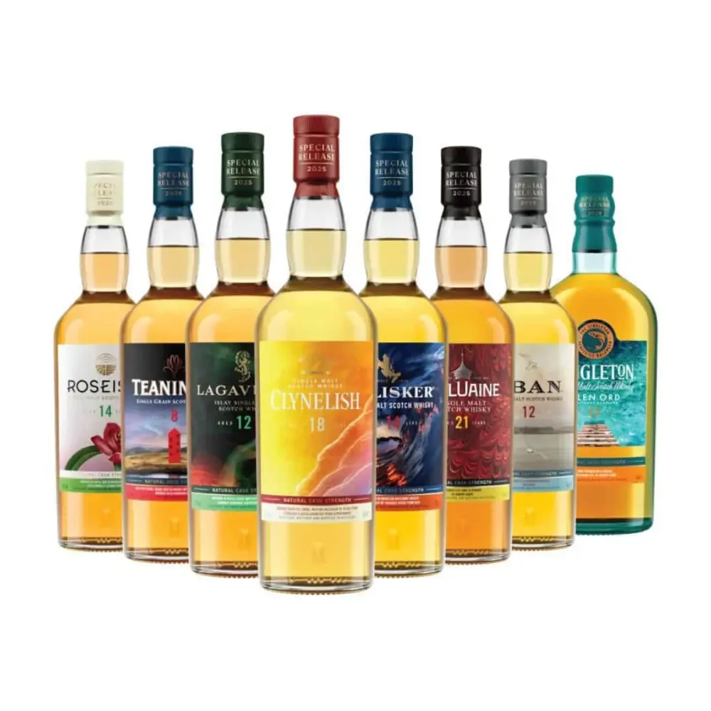 2025 年帝亞吉歐 Special Releases「四境臻釀」以創新桶型、實驗蒸餾與酒廠個性為主軸,共收錄 8 款限量原酒:包含梅茲卡爾桶的蘇格登、火山岩烘烤桶的泰斯卡、PX & Oloroso 的煙燻樂加維林、清秀海風系歐本、瑰嶼老年份實驗作、鳳梨切段蒸餾的克里尼利基、首發雪莉桶大雲,以及黑麥風格的帝尼尼。每一款皆具收藏與品飲價值。