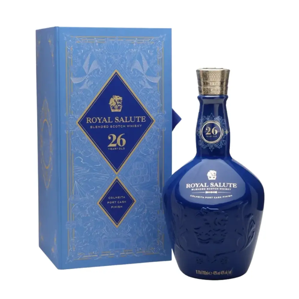 每一滴酒液皆以皇家禮炮經典 26 年長熟威士忌為基底,再以 Colheita 波特酒桶完熟收尾,讓深厚酒體注入飽滿果香、甜潤太妃、堅果與皮革調性的高貴層次。
